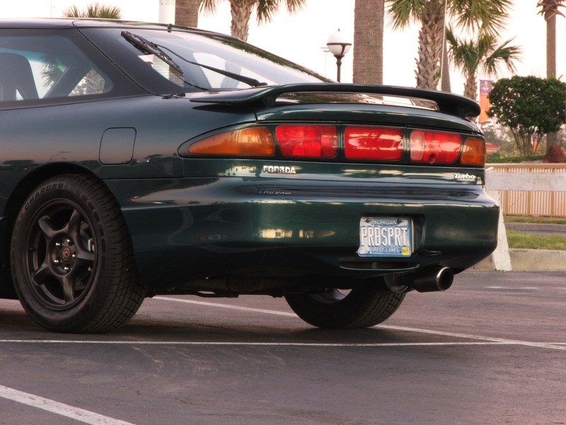 Factory Specs: 1997 Ford Probe GTS Medium alpine green Saddle leather tan interior White vinyl GTS stripes 5-speed manual gearbox (Mazda) 2.5l KLDE V6 24v DOHC engine 16" chrome wheels 225/50 VR Goodyear gatorbacks Premium sound w/cassette All available power options No sunroof No ABS |